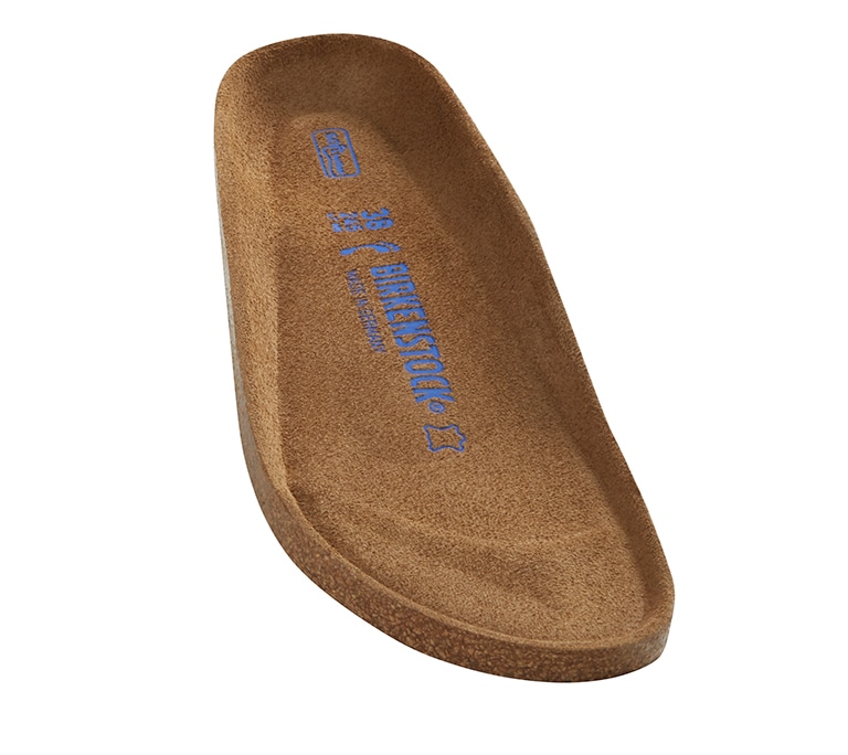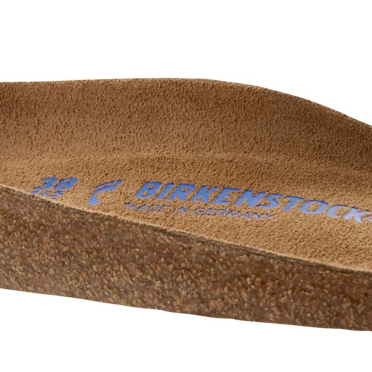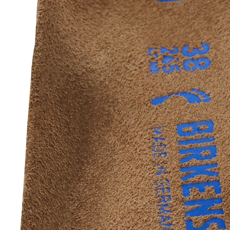Natural leather can be recognized by its untreated surface. BIRKENSTOCK purposely does not treat surface grains and other characteristic features. BIRKENSTOCK uses sturdy leather with a thickness of 2.8 to 3.2 millimeters as upper material.