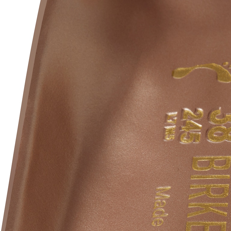 Natural leather can be recognized by its untreated surface. BIRKENSTOCK purposely does not treat surface grains and other characteristic features. BIRKENSTOCK uses sturdy leather with a thickness of 2.8 to 3.2 millimeters as upper material.