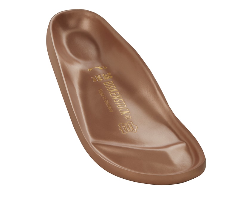 The footbed liner and outer edge of the footbed of BIRKENSTOCK Exquisite models are wrapped in very soft and supple nappa leather.